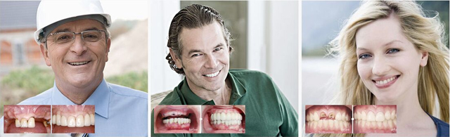 利用缺牙间隙相邻两侧好牙把假牙固定其上,缺点要磨去部分健康邻牙,许多人常因磨牙带来的酸痛而不欢迎固定假牙。